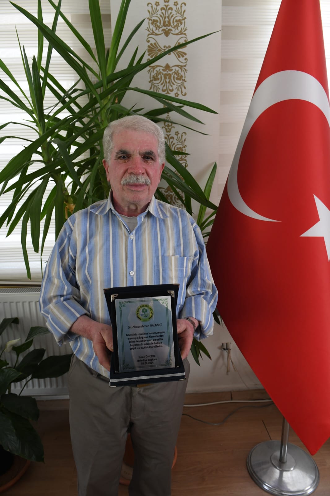 Belediyemiz personellerinden emekliye ayrılan Abdurrahman NALBANT, Belediye Başkanımız Ercan ÖNCEBE tarafından plaketle ödüllendirildi.